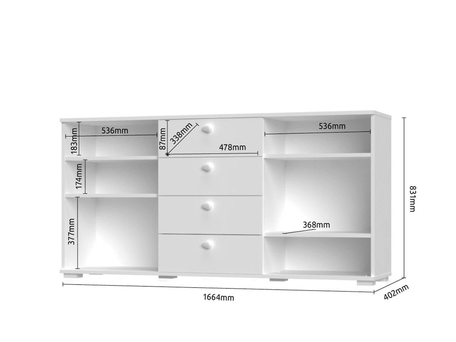 – Poseduje četiri fioka, šest polica, soft-close šarke, soft-close klizače sa usporivačem i podesive nožice