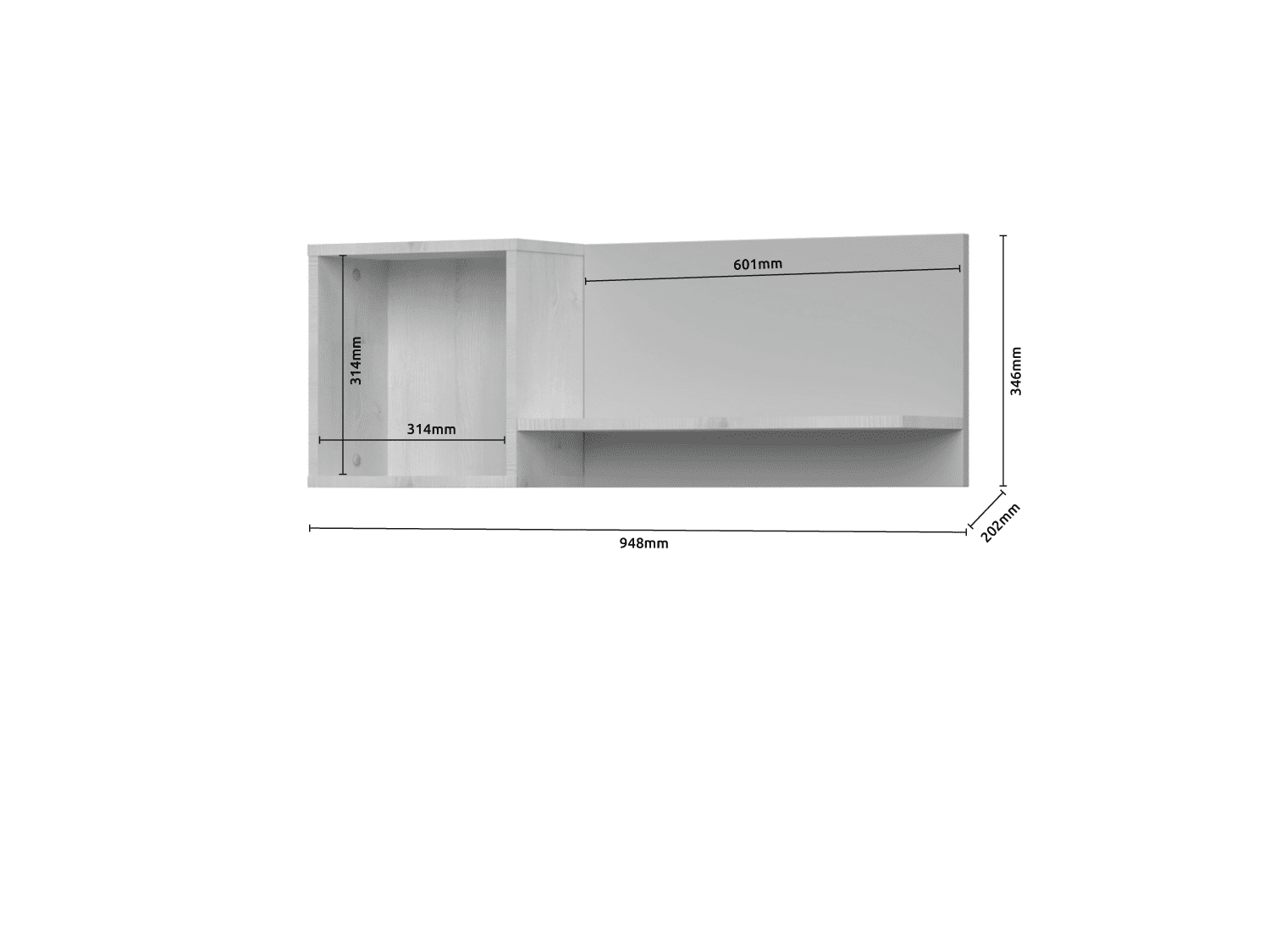 – Korpus elementa izrađen je od univera u drvo-dekoru Polarni bor, u kombinaciji sa medijapanom u boji pesak