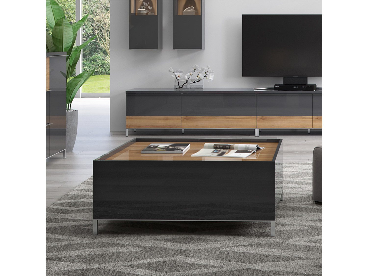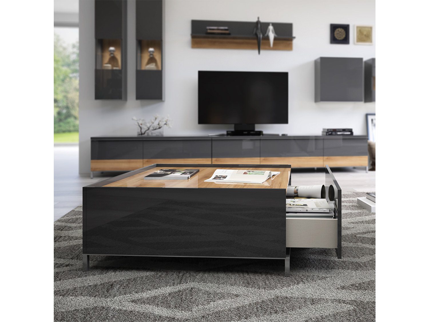 – Funkcionalan i moderan klub sto za dnevnu sobu iz kolekcije ONYX, sa dve fioke