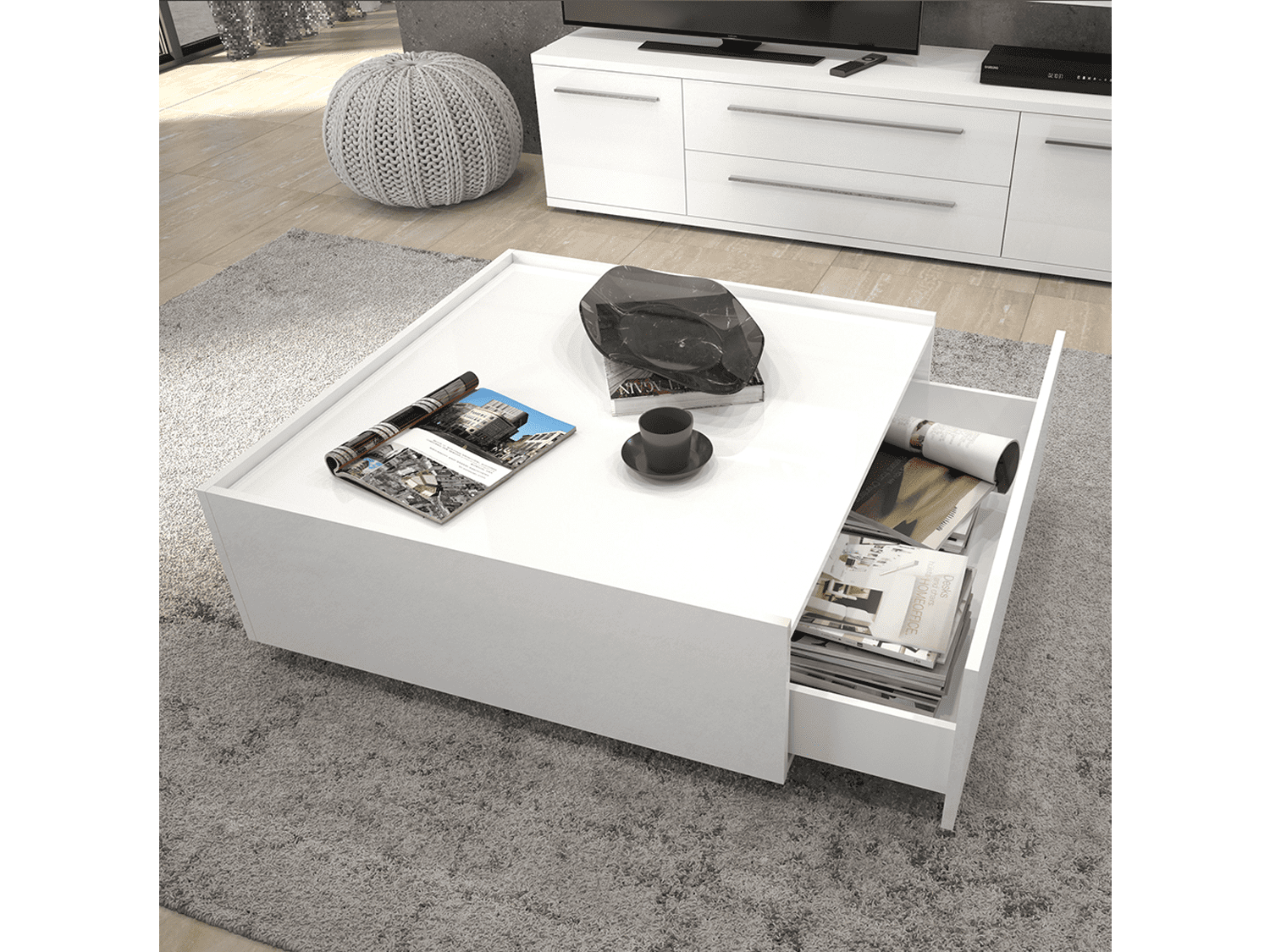 – Funkcionalan i moderan klub sto iz kolekcije nameštaja PIANO,sa dve fioke