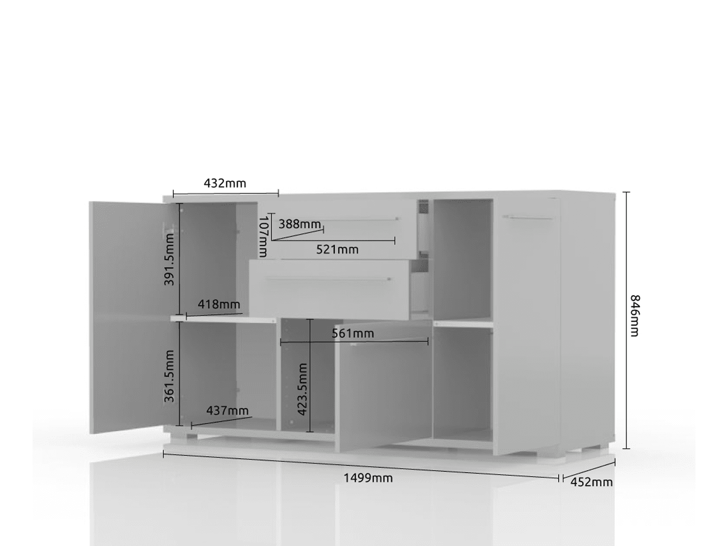 ŠIRINA: 150 cmVISINA: 85 cmDUBINA: 45 cm
