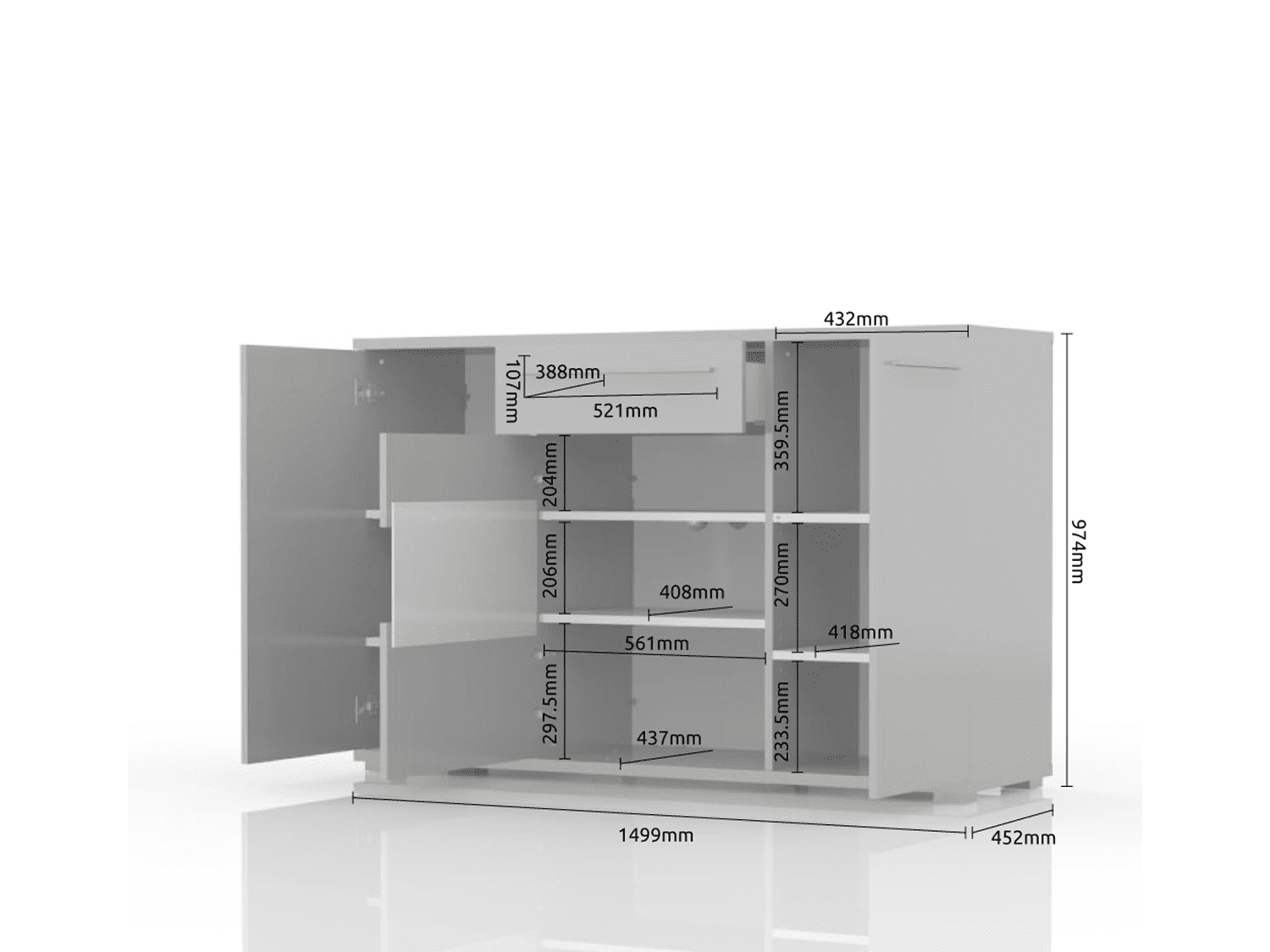 ŠIRINA: 150 cmVISINA: 97 cmDUBINA: 45 cm