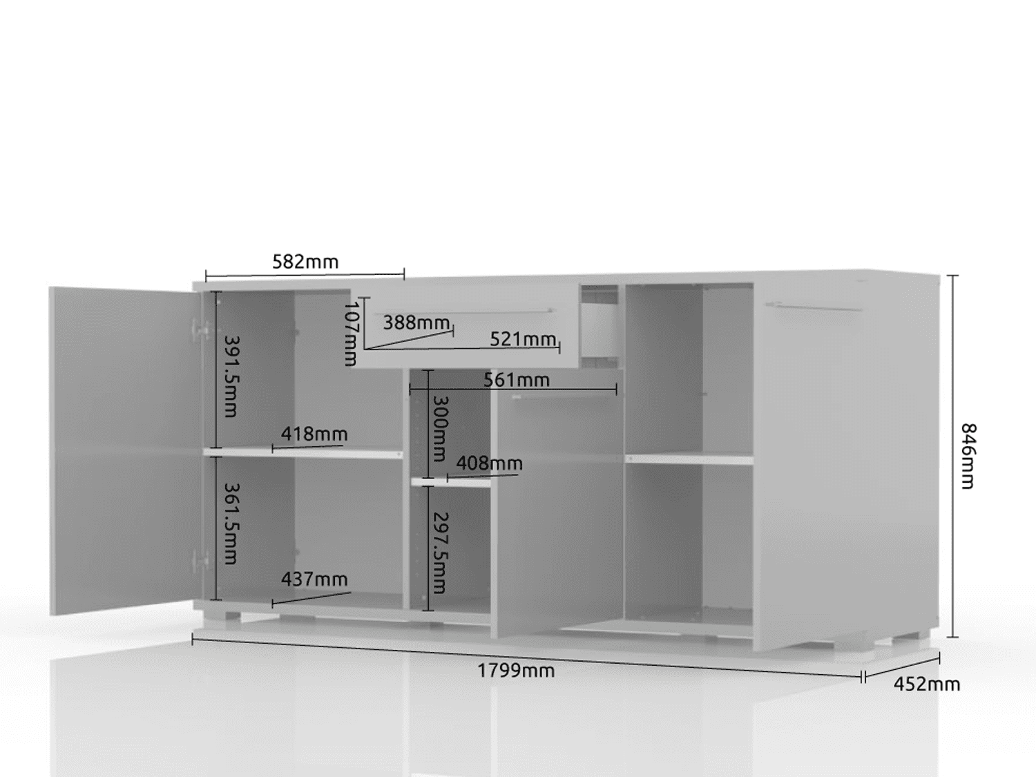 – Poseduje fioku,tri police, soft-close šarke, soft-close klizače i hromirane ručice