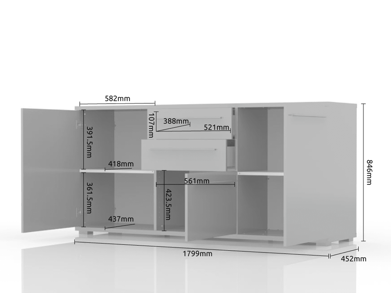– Poseduje dve fioke,dve police, soft-close šarke, soft-close klizačei hromirane ručice