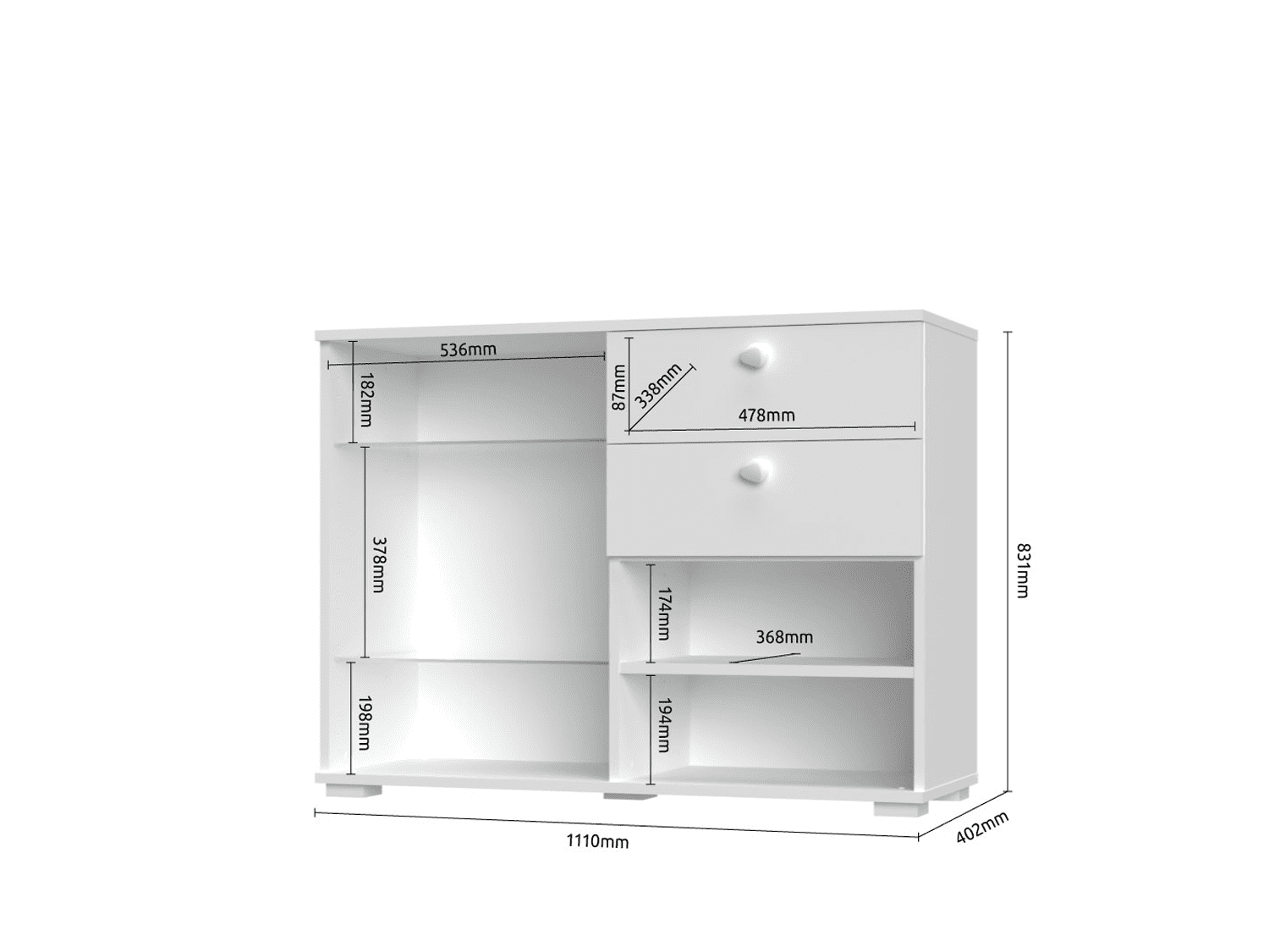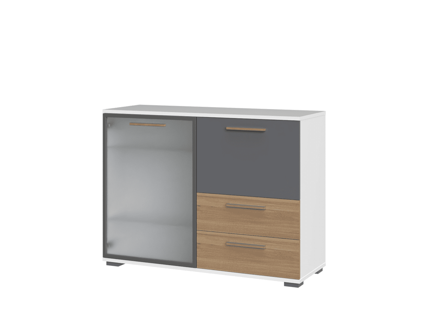 – Komoda sa jednim velikim staklenim krilom, jednim malim punim krilom i dve fioke iz kolekcije All concept room