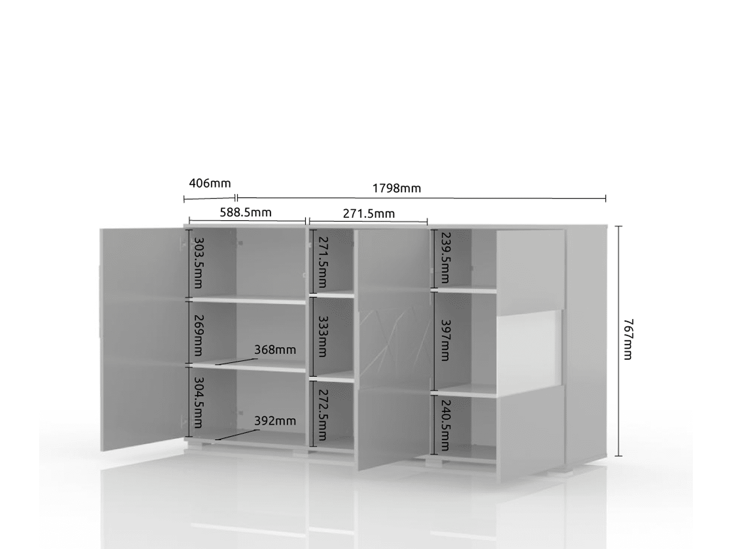 – Poseduje šest polica, soft-close šarke,p ush-to-open mehanizam, podesive nožice led osvetljenje snage 0,3W