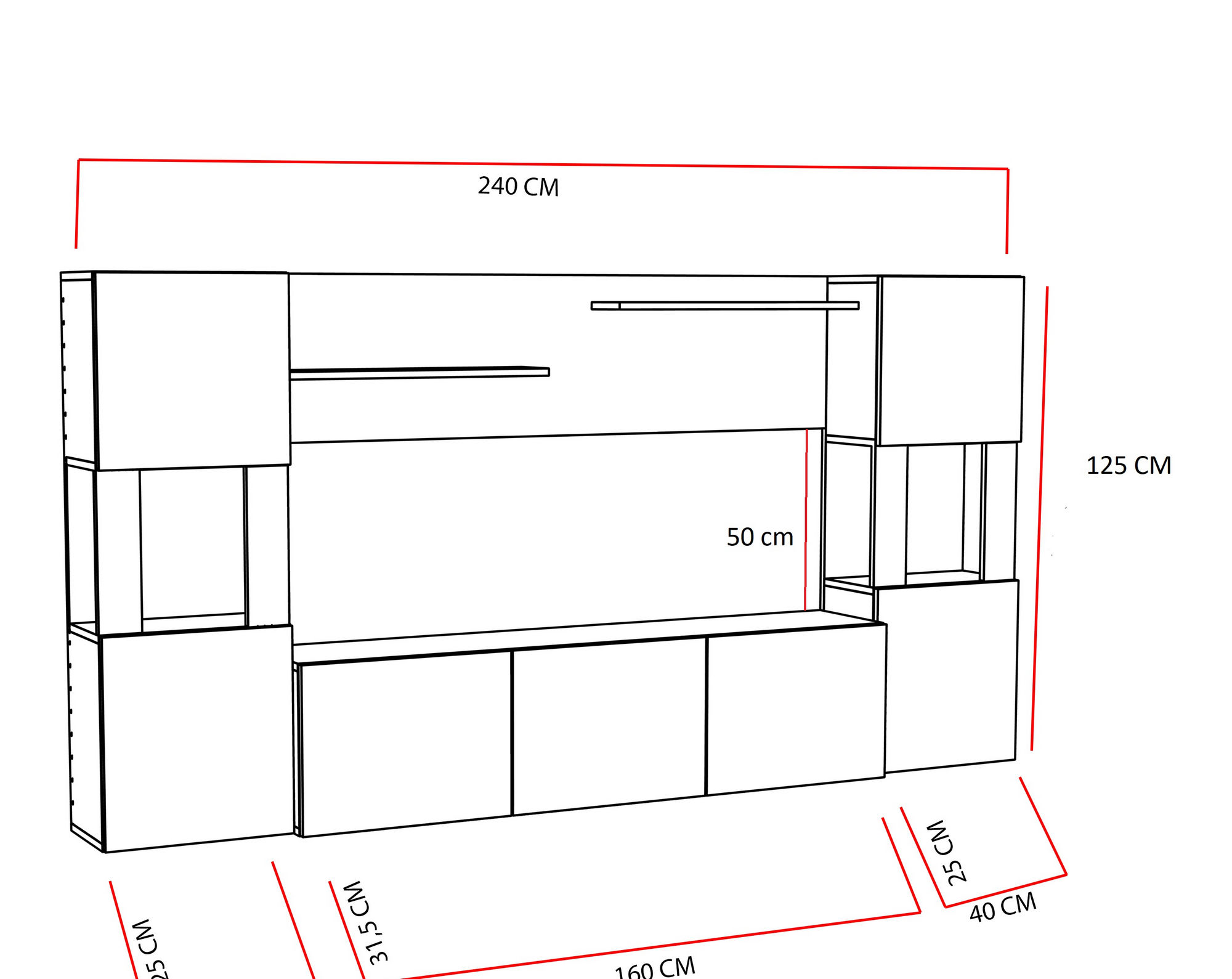 Dimenzije TV jedinice: 160 × 125 × 31,5 cm