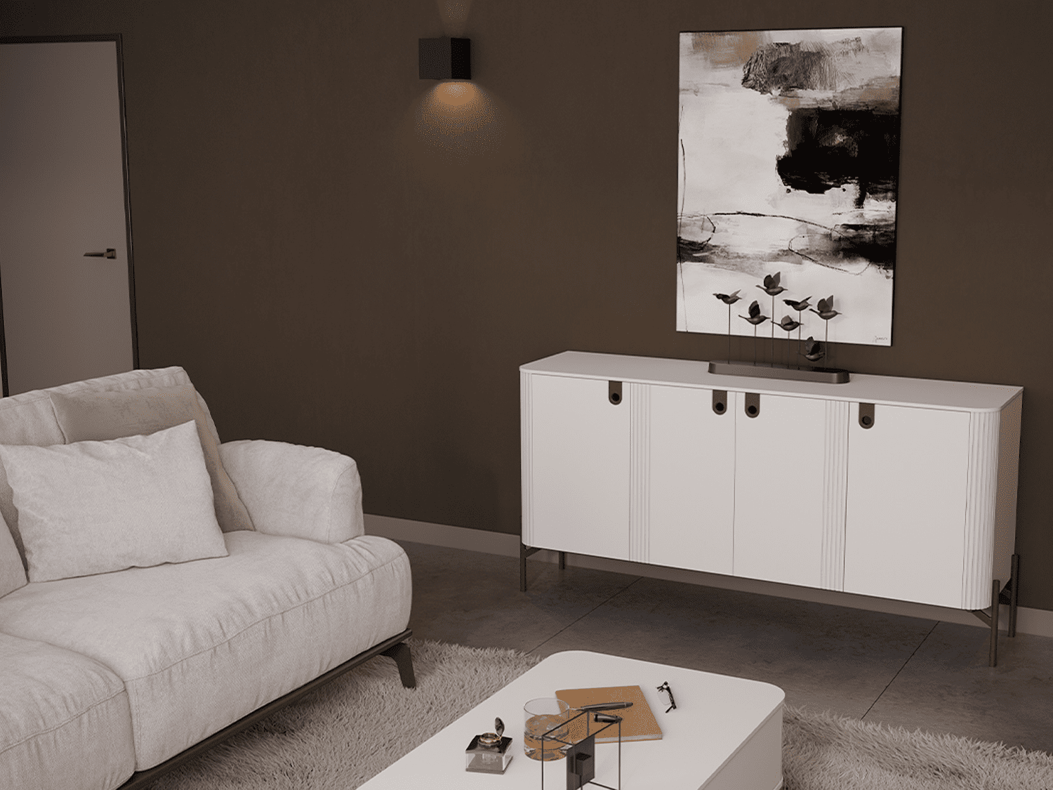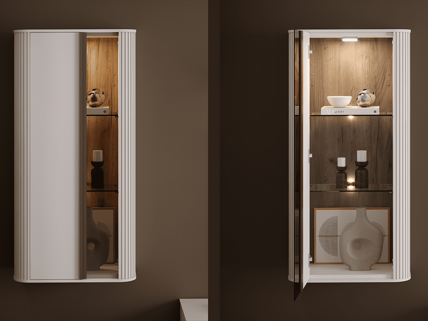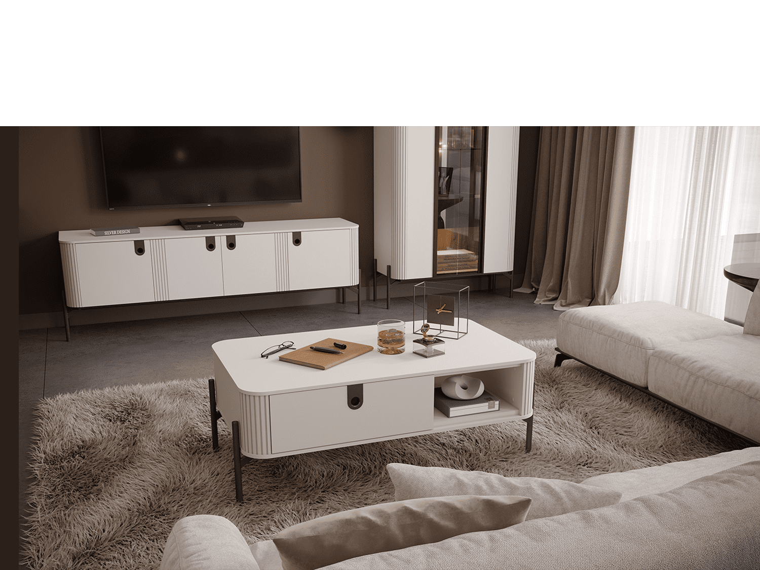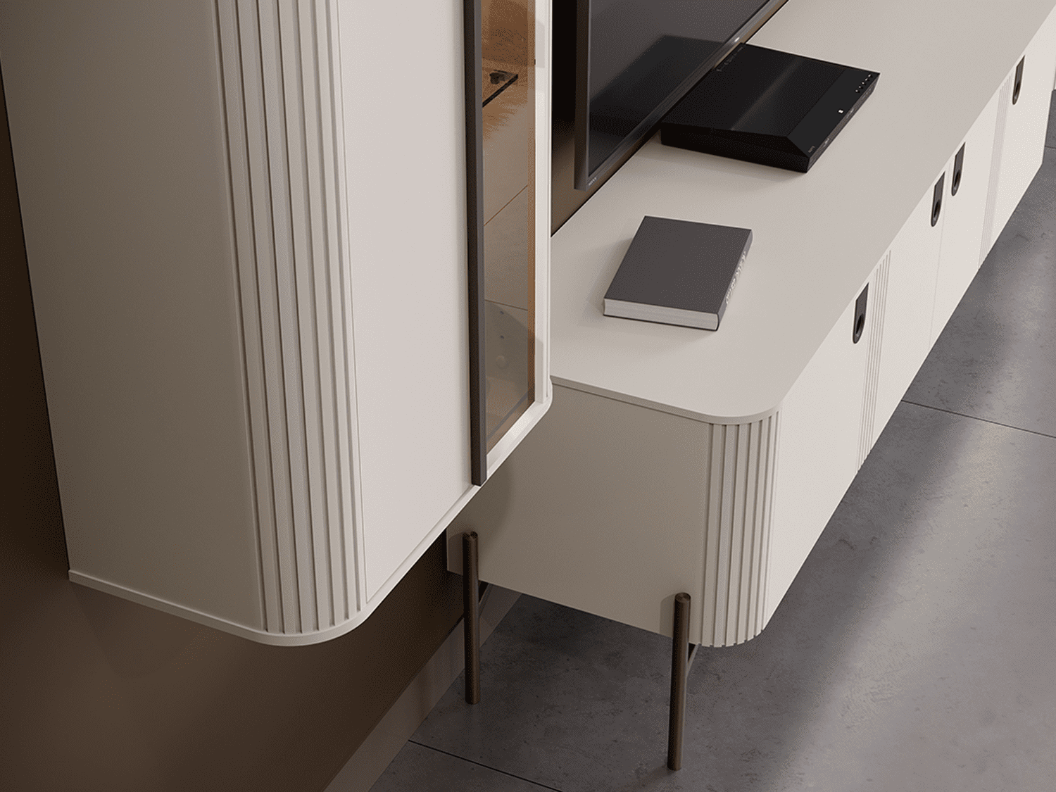 – Poseduje parsol brown staklo, metalni ram, metalne nožice, metalne ručice, led rasvetu i soft close mehanizme