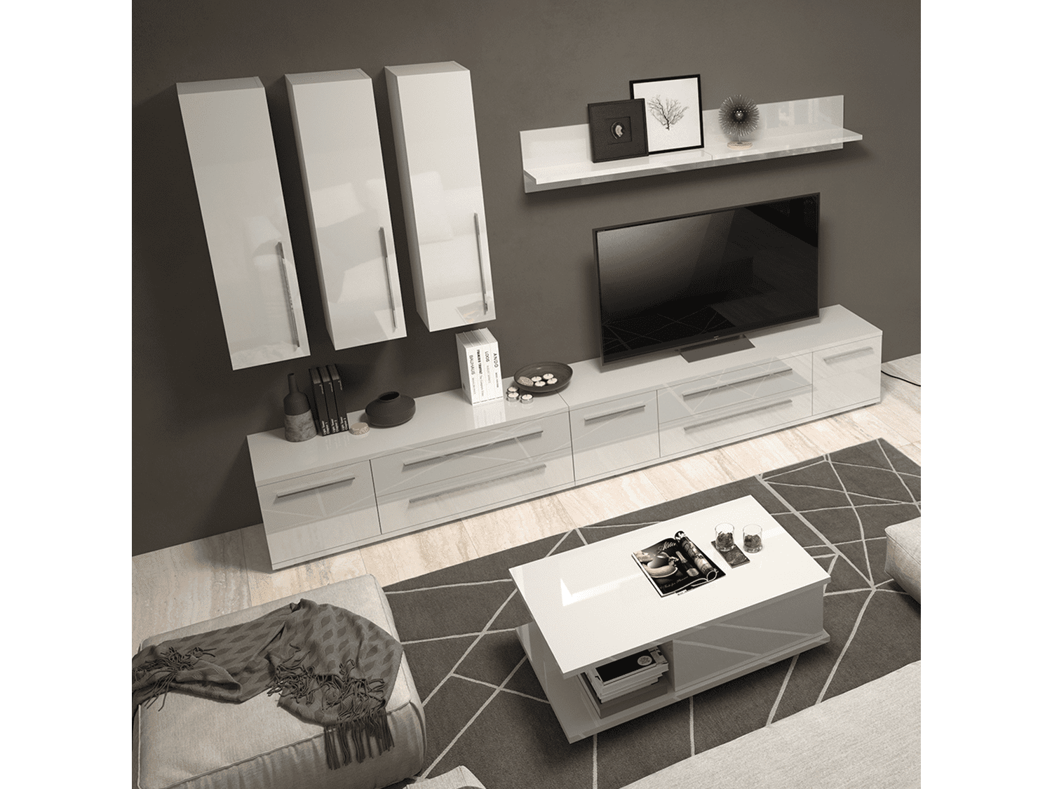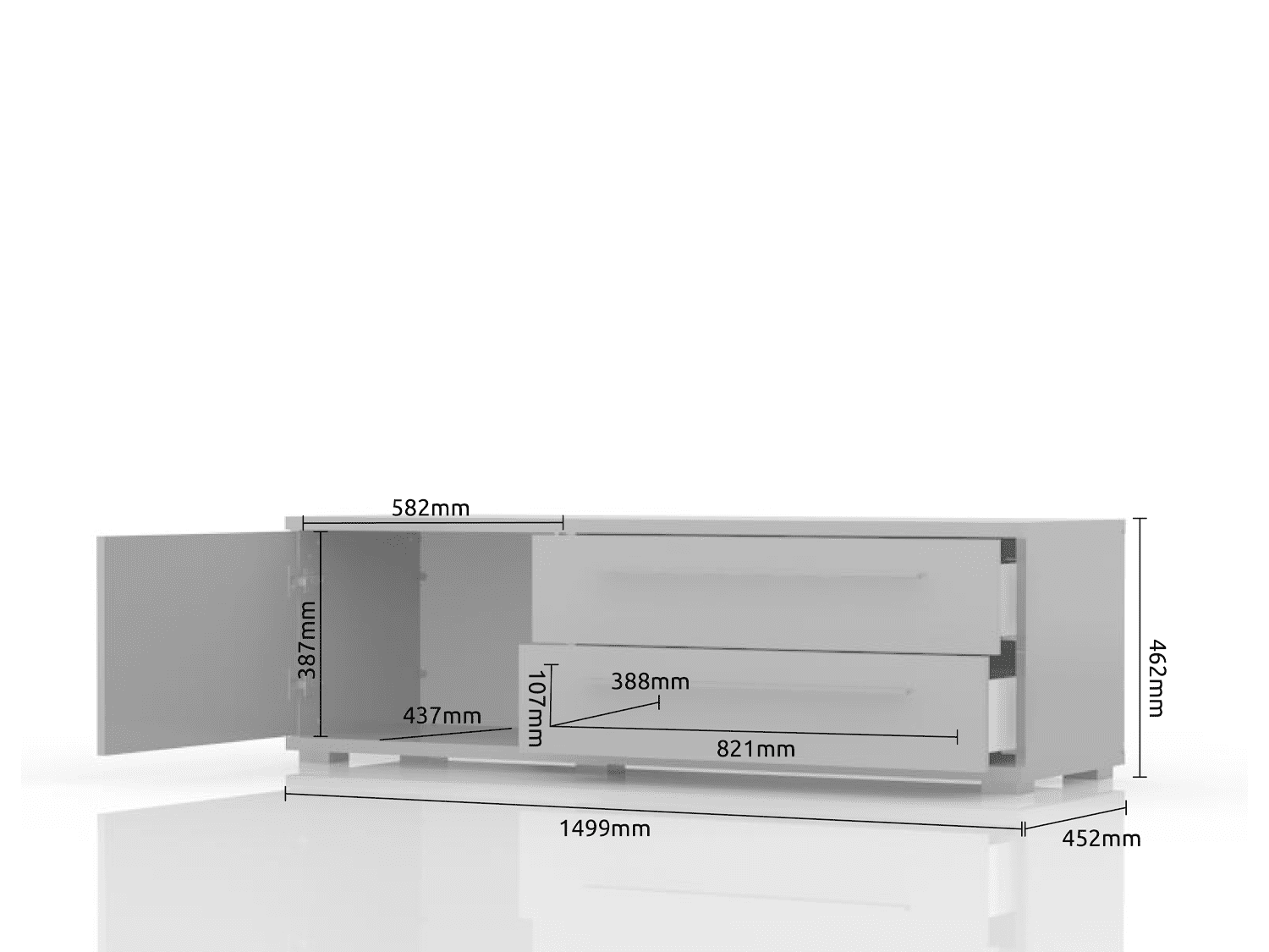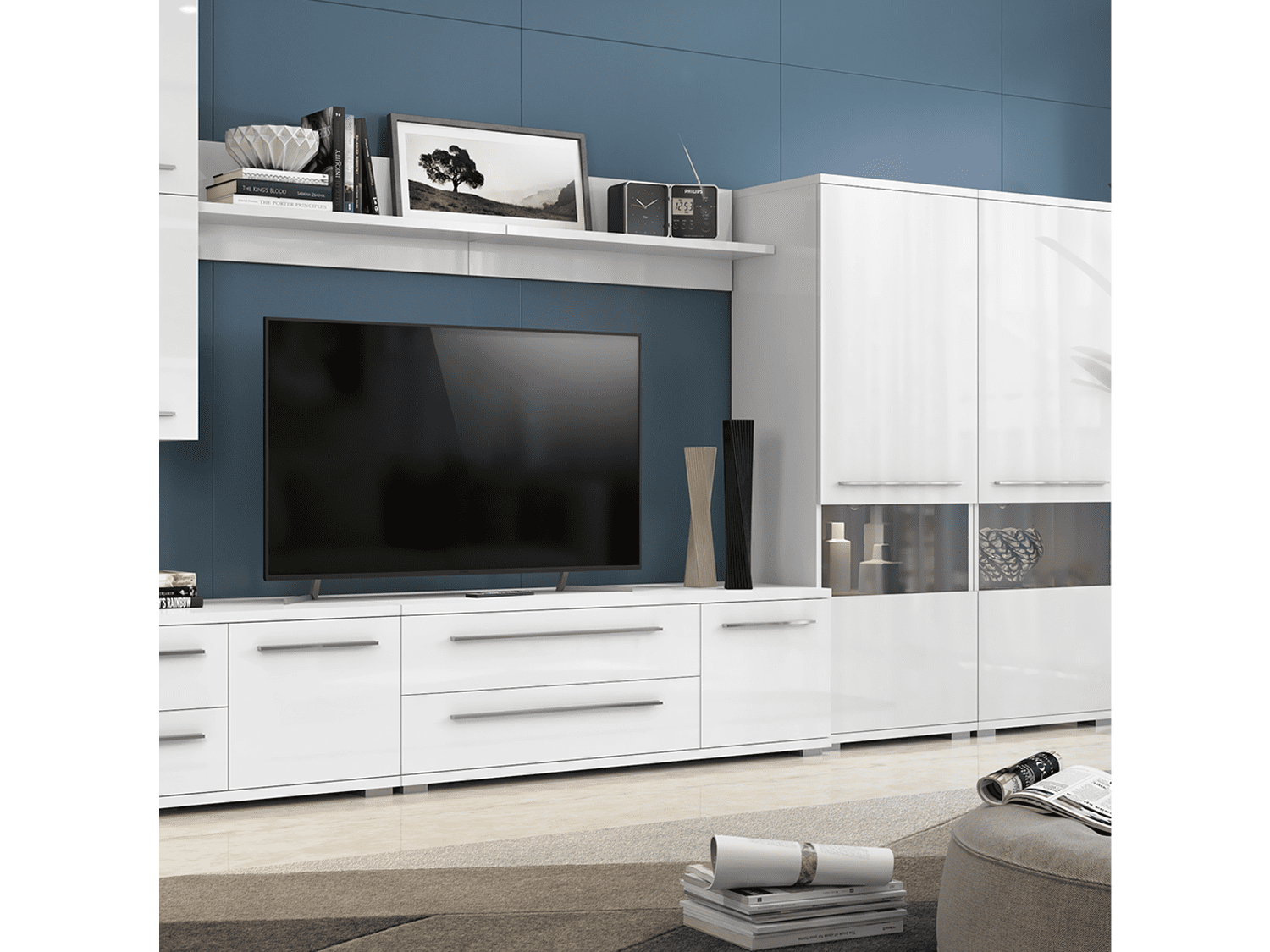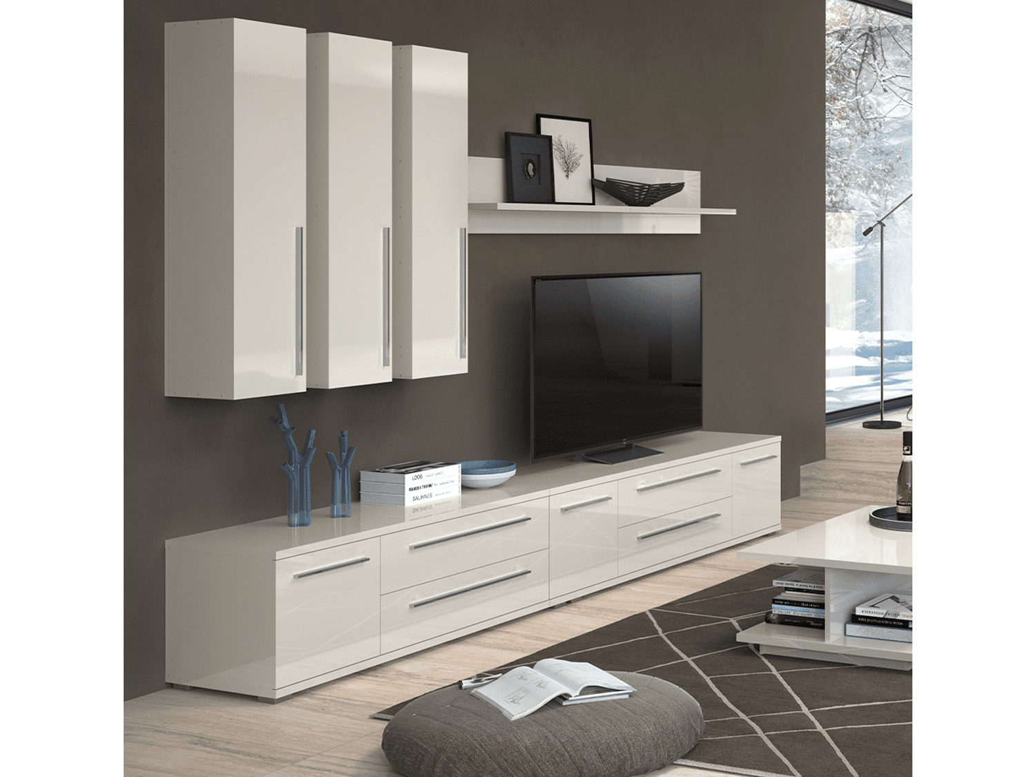– Tv komoda za dnevnu sobu iz kolekcije nameštaja PIANO sa jednim krilom (60 cm) i dve fioke (90cm), kompletno lakirana najnovijom tehnologijom UV lakiranja