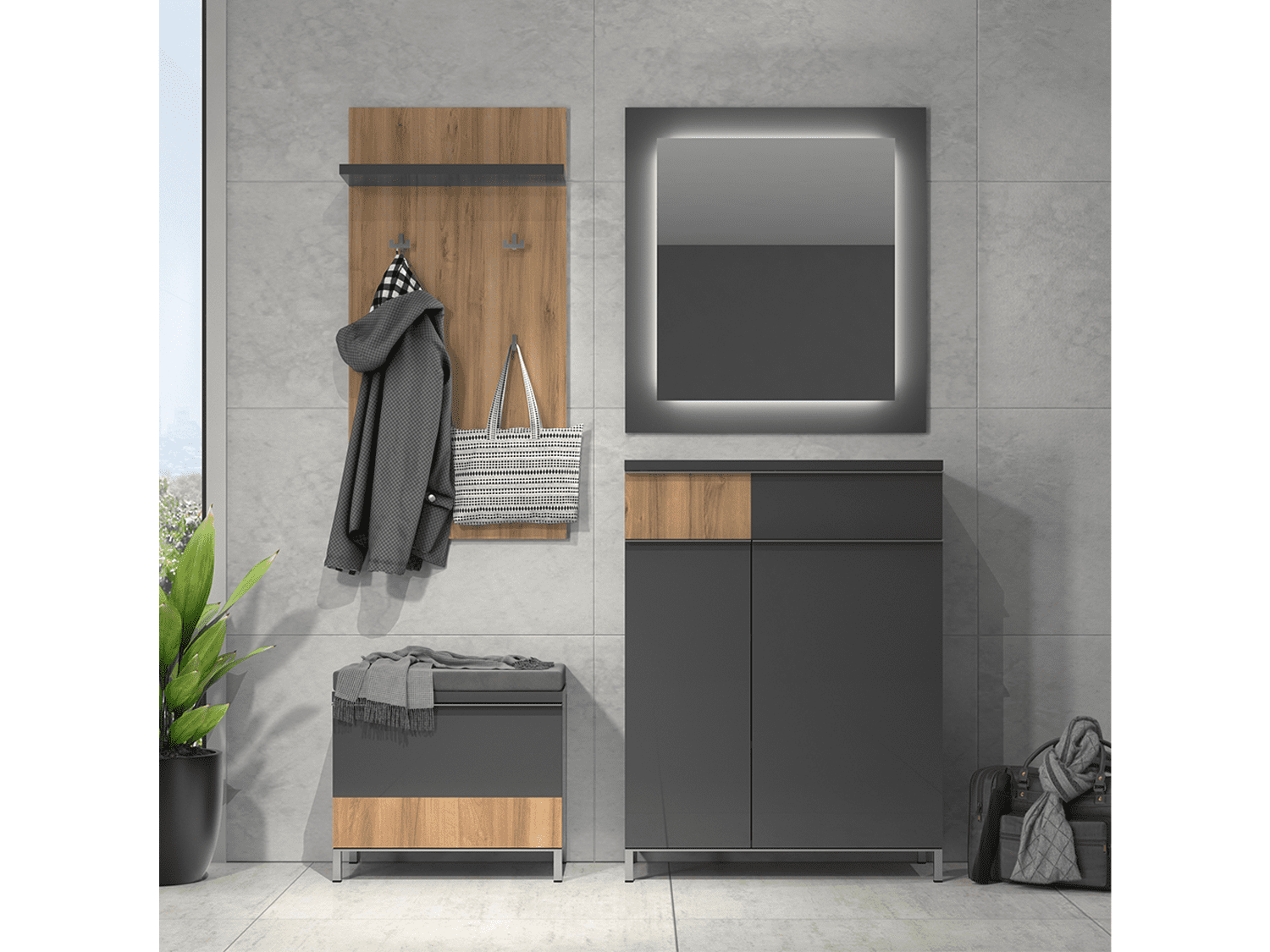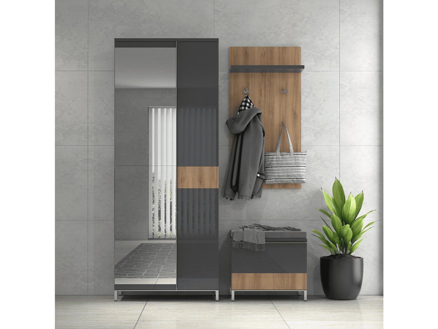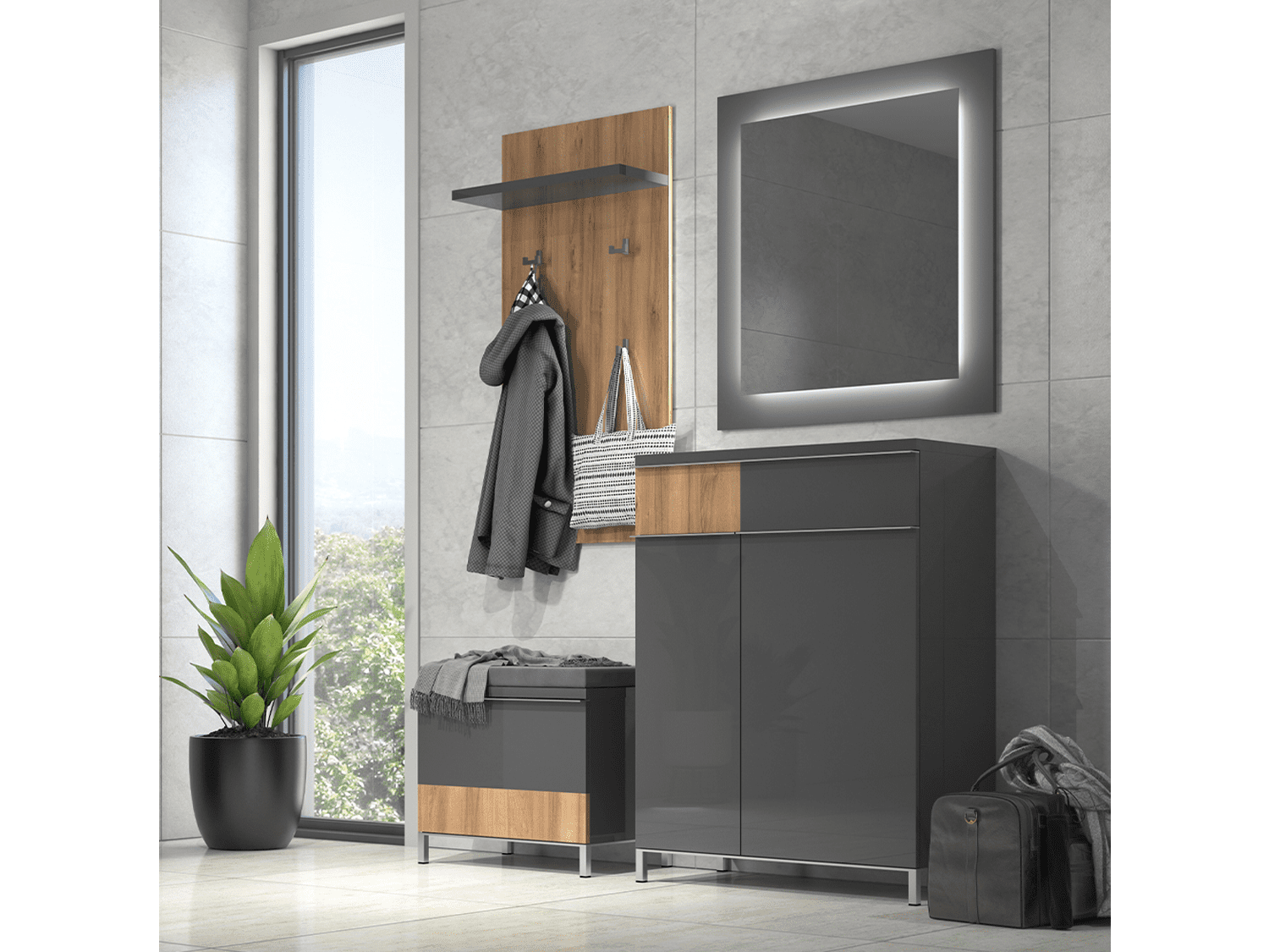 – Čiviluk sa četiri kačilice za garderobu i jednom policom iz kolekcije Onyx