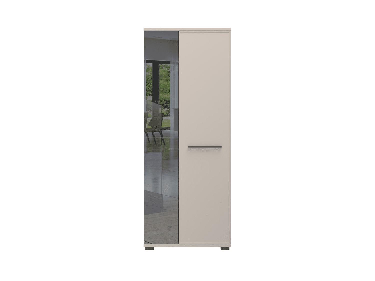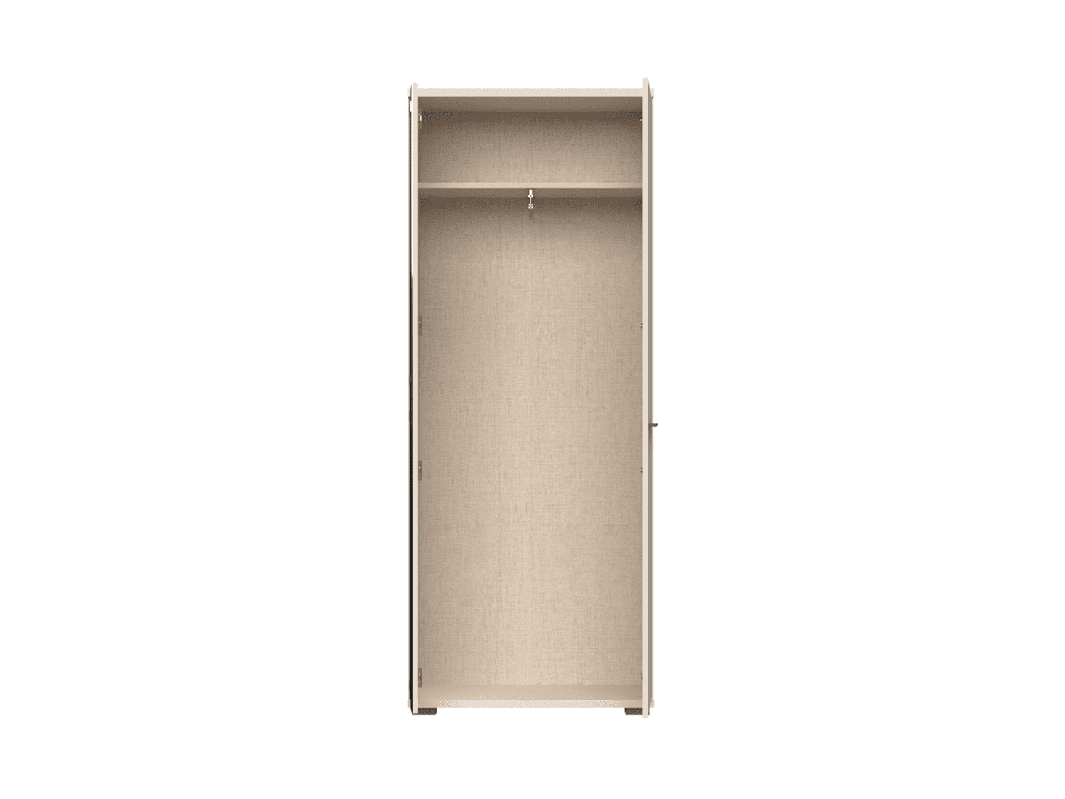 – Poseduje policu od univera debljine 18mm, garderobnu šipku na izvačenje,podesive nožice i ručicu u boji Cortado braon mat
