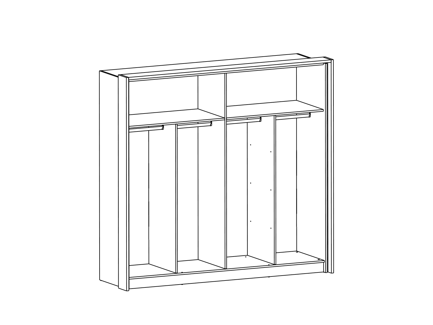 – Poseduje dve police, četiri garderobne šipke i metalne rukohvate