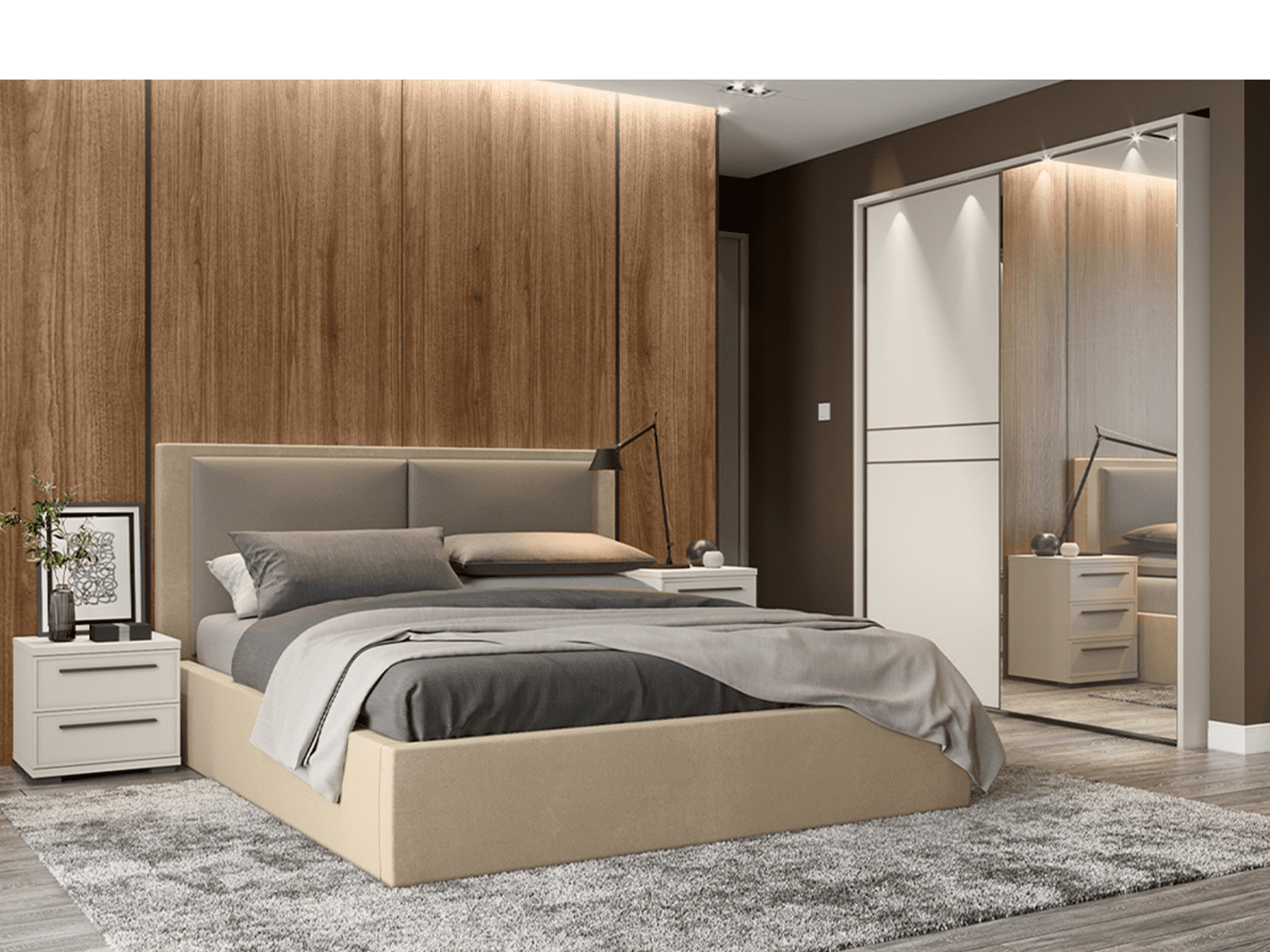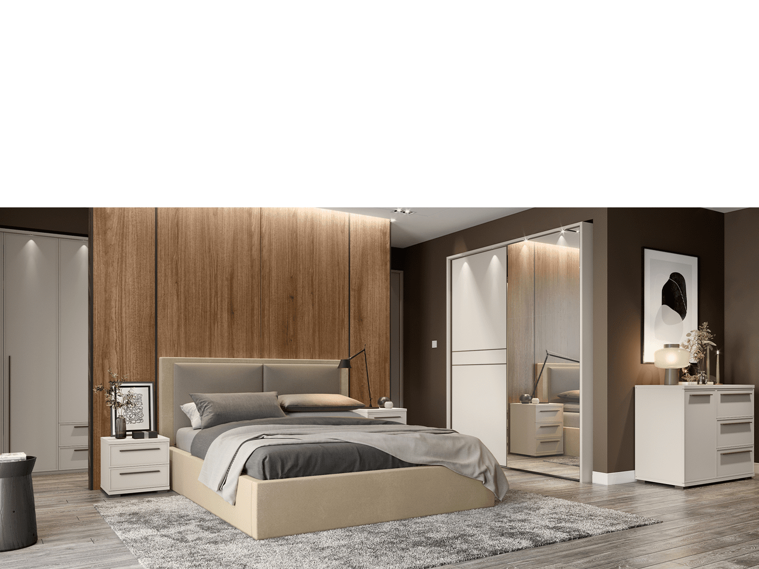 – Modularna spavaća soba OPERA lakirana soft mat UV lakom u boji Kašmir
