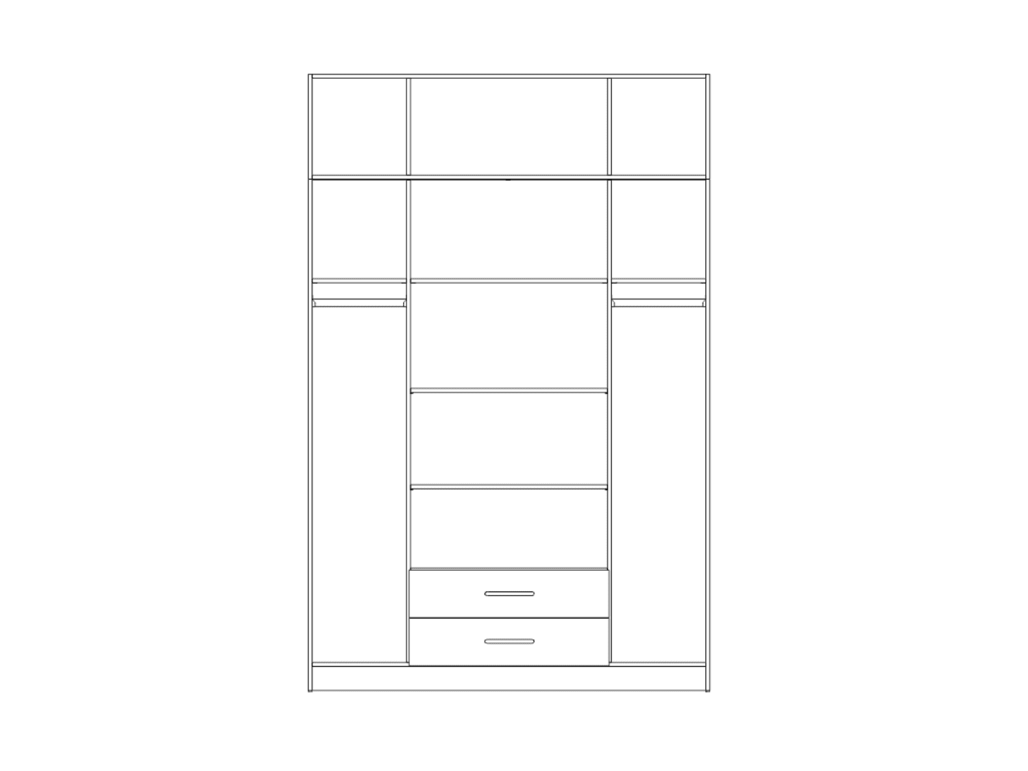 – Poseduje 2 police, 2 garderobne šipke i 2 ogledala