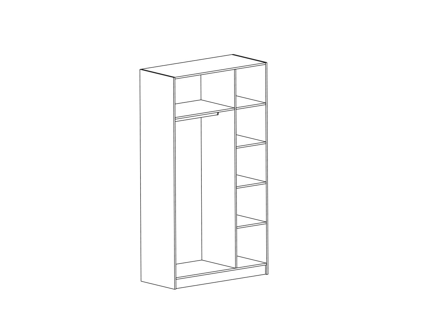 – Poseduje pet unutrašnjih polica, jednu garderobnu šipku i dve metalne dekorativne ručice