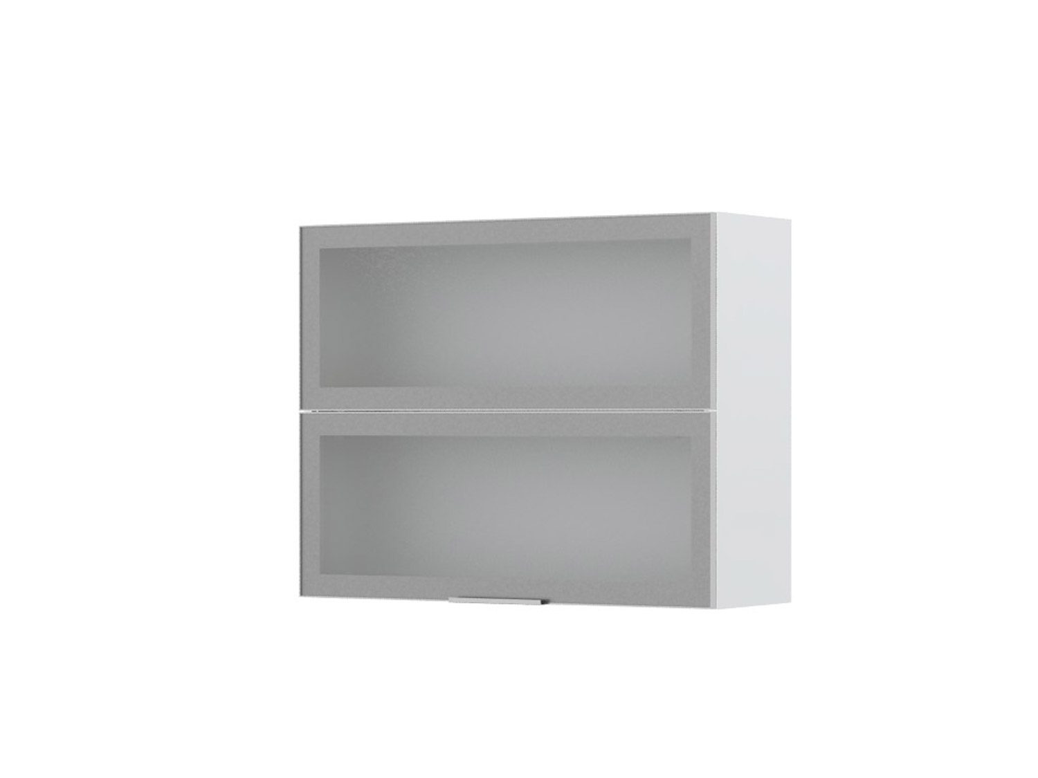 Viseći kuhinjski element, širine 90cm, sa dva krila sa kaljenim staklom debljine 4mm u ramu od poliranog aluminijuma sa pripadajućom ručicom koja je uključena u cenu proizvoda.